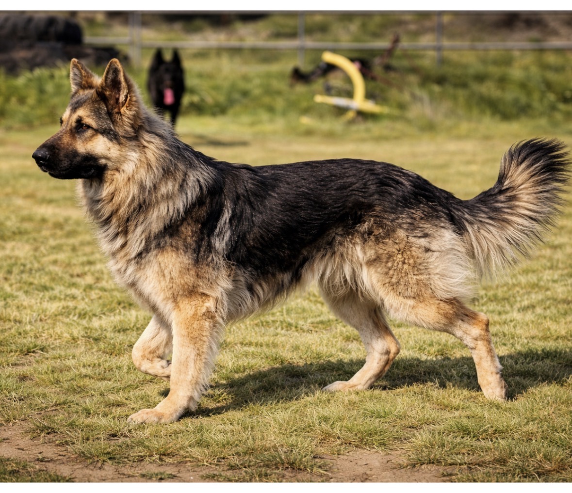 Our sweet Saber. Saber is just a fantastic guy. Super gentleman that wins hearts everywhere he goes. We expect him to mature to 120-130lbs lean, He has a large structure and is medium drive. See his health testing below. Saber is a patterned sable that carries black and tan/red and often times looks black and tan in different lighting.